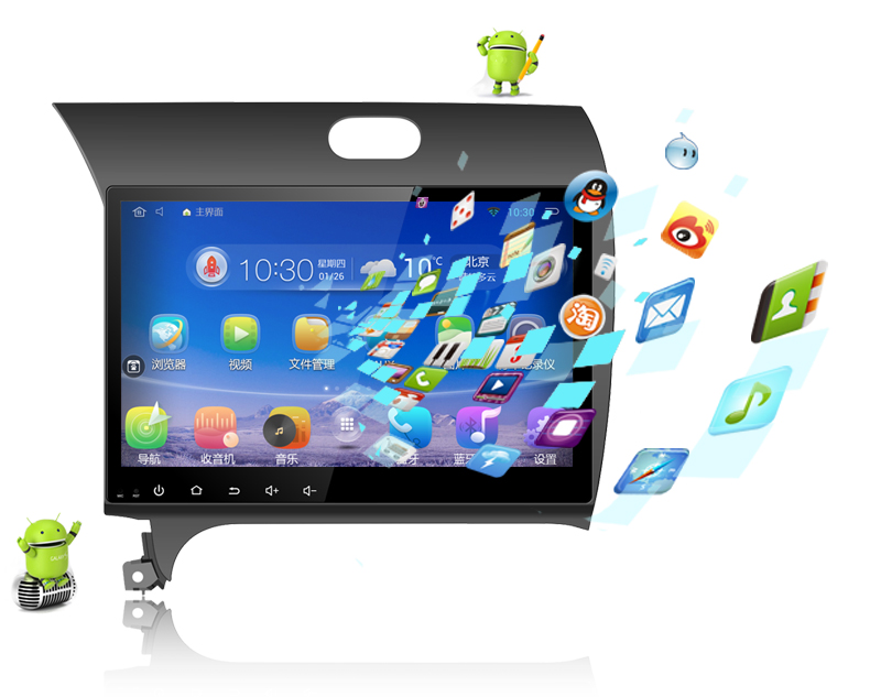 功能方面Daza大智起亞K3專車專用10.2寸安卓車載影音導(dǎo)航支持人機(jī)對(duì)話,解放雙手,支持語音聲控導(dǎo)航、藍(lán)牙、電話、收音機(jī)、音樂等系列功能,而且可以通過CAN-BUS實(shí)現(xiàn)方向盤控制。支持手機(jī)互連,安全駕駛精彩無限,車機(jī)可實(shí)時(shí)同步顯示手機(jī)畫面,實(shí)現(xiàn)雙向控制,操作車機(jī)即可使用手機(jī)功能,使用原手機(jī)沖電線即可實(shí)現(xiàn),視頻顯示無延時(shí),手機(jī)無需另行安裝軟件。還支持車輛全方位信息實(shí)時(shí)顯示和高清行車記錄儀攝錄!