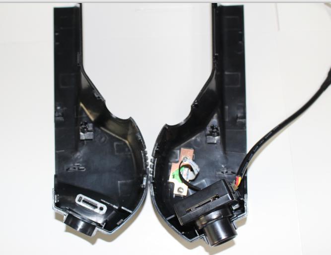將大智寶馬專車專用行車記錄儀拆分成兩部分,可以看到它的內(nèi)部結(jié)構(gòu),有一個(gè)小巧迷你的攝像頭露在外面,它的內(nèi)芯和外接線也都在里面。