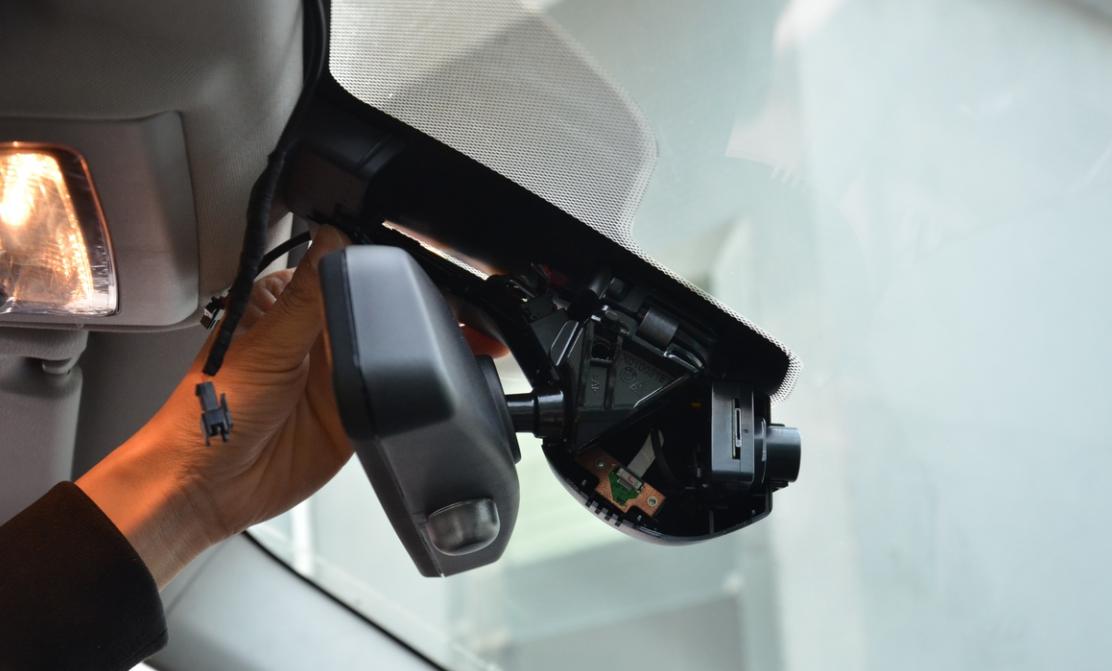 要先將機(jī)器的主體部分安裝在原車后視鏡背面。其實(shí)操作起來很簡單,只要鏡頭調(diào)整好方向,將機(jī)器主體部分與后鏡頭固定的位置相吻合即可。