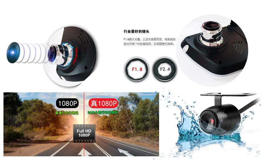 大智G822后視鏡雙鏡頭行車記錄儀擁有前后雙攝錄畫中畫顯示、倒車后視、停車監(jiān)控、微光夜視等功能,在高清成像上優(yōu)于同類產(chǎn)品。在配置上采用行業(yè)最好的六層全玻璃鏡頭,前攝像頭1200有效像素,后攝像頭800萬有效像素,前方170度大廣角攝錄,真正的前后1080P高清動態(tài)影像攝錄。