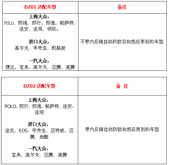 大智大眾專車專用行車記錄儀擁有DZ01和DZ02兩個型號,適配詳情如下: