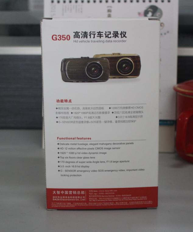 首先我們看到的就是G350高清行車的外包裝,在品牌繁多、質(zhì)量參差不齊的汽車電子市場,要找到一臺自己喜歡的行車記錄儀還真有點難度,不過在看到大智的產(chǎn)品包裝后還是眼前一亮,簡約、時尚的風(fēng)格讓人驚喜,在包裝正面除了品牌LOGO、型號和一張產(chǎn)品圖片外,“中國高清行車記錄儀第一品牌”十幾個字非常的醒目,想必產(chǎn)品也不會令人失望吧。