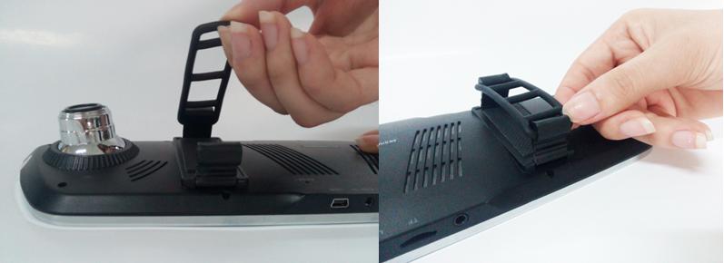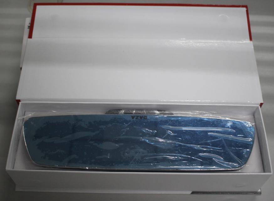 取出G822后視鏡行車記錄儀,然后將防炫目藍色鏡面上的塑料薄膜撕下來,這時可以看到精致的后視鏡外觀,讓人忍不住的就把玩起來!