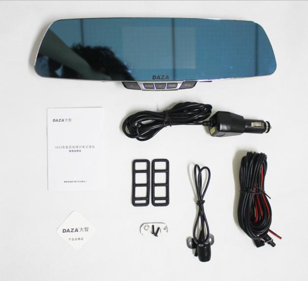 大智G822后視鏡行車記錄儀升級版附件有車充、后攝像頭、連接線、硅膠扣、產品使用說明書和產品合格證。