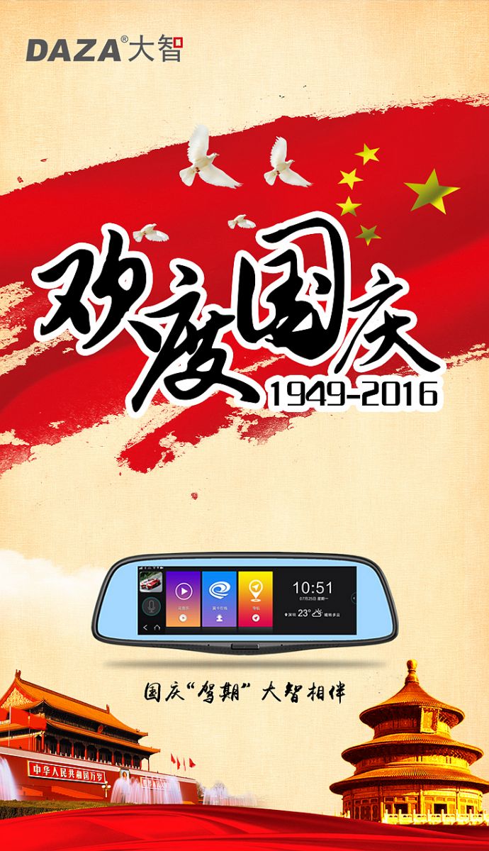 一年一度的十一國(guó)慶小長(zhǎng)假到啦!想要駕車(chē)出游的小伙伴,都準(zhǔn)備好了嗎。為了讓旅程中更加放心和輕松,行車(chē)記錄儀和實(shí)時(shí)導(dǎo)航都不可少哦。大智智能云鏡至尊N90,一路伴你同行,全局語(yǔ)音聲控搞定一切,方便省心。大智祝各位小伙伴"駕期"快樂(lè)!