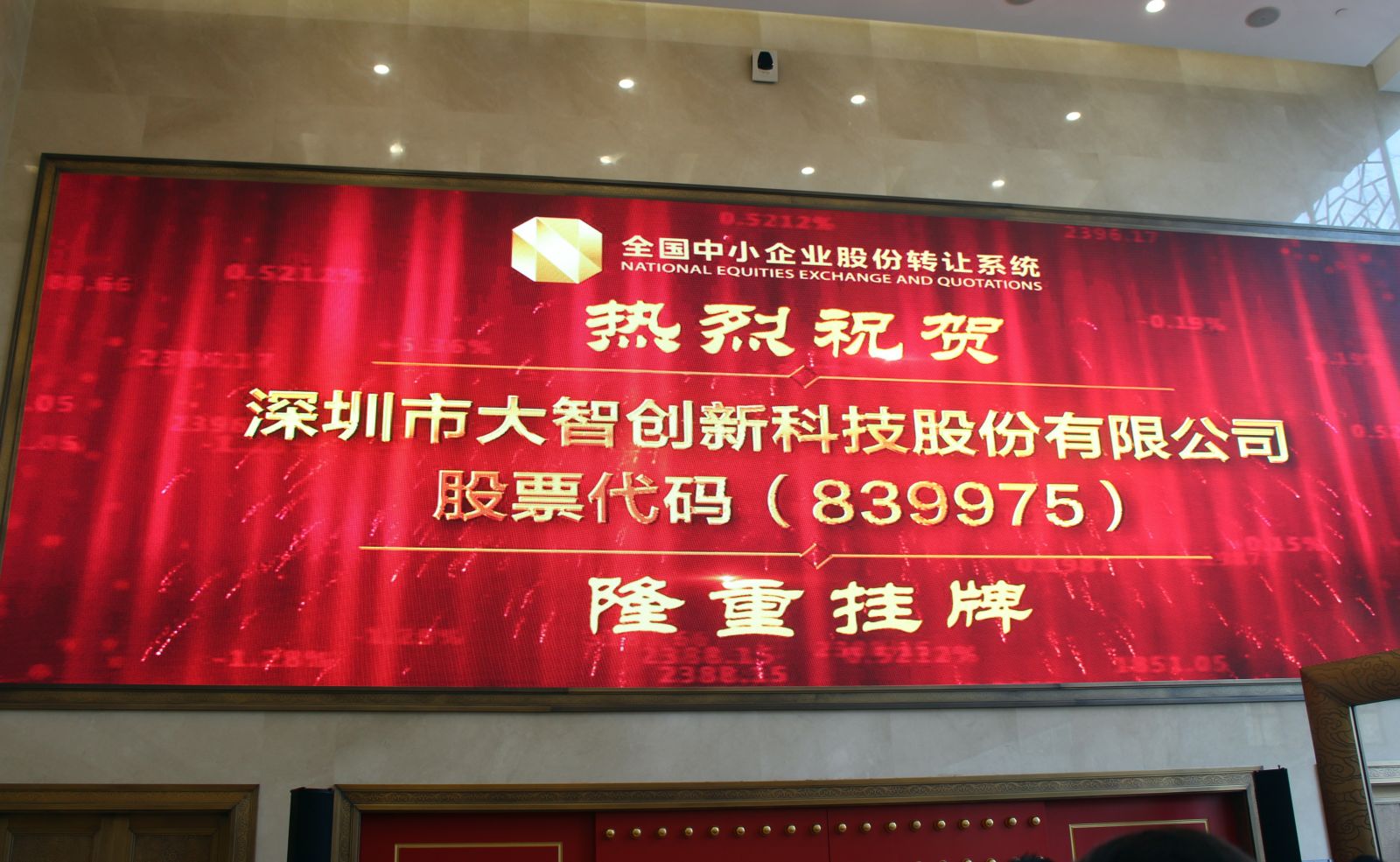 12月23日,深圳市大智創(chuàng)新科技股份有限公司(股票名稱:大智創(chuàng)新,股票代碼:839975)正式在全國(guó)中小企業(yè)股份轉(zhuǎn)讓系統(tǒng)舉行掛牌儀式,宣告登陸資本市場(chǎng)。綠苗長(zhǎng)成大樹(shù),夢(mèng)想結(jié)出碩果,至此大智創(chuàng)新成為汽車(chē)電子行車(chē)記錄儀行業(yè)首家掛牌的科技公司。