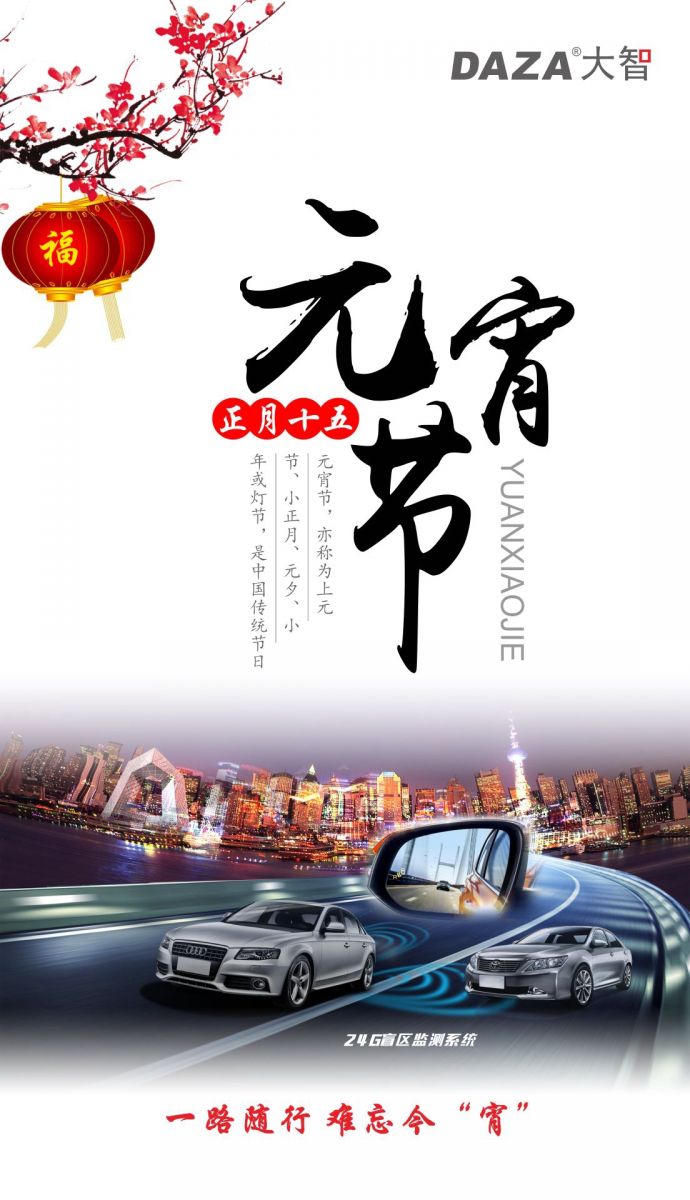 元宵節(jié)至,就意味著這個“年”徹底結(jié)束了,很多奮斗在外的人又要開始新一年的遠(yuǎn)行,離開家鄉(xiāng)離開父母,開上心愛的車帶上家人,朝著遠(yuǎn)方而去,大智行車記錄儀、盲區(qū)監(jiān)測系統(tǒng)一路隨行,為你的行車安全保駕護(hù)航!